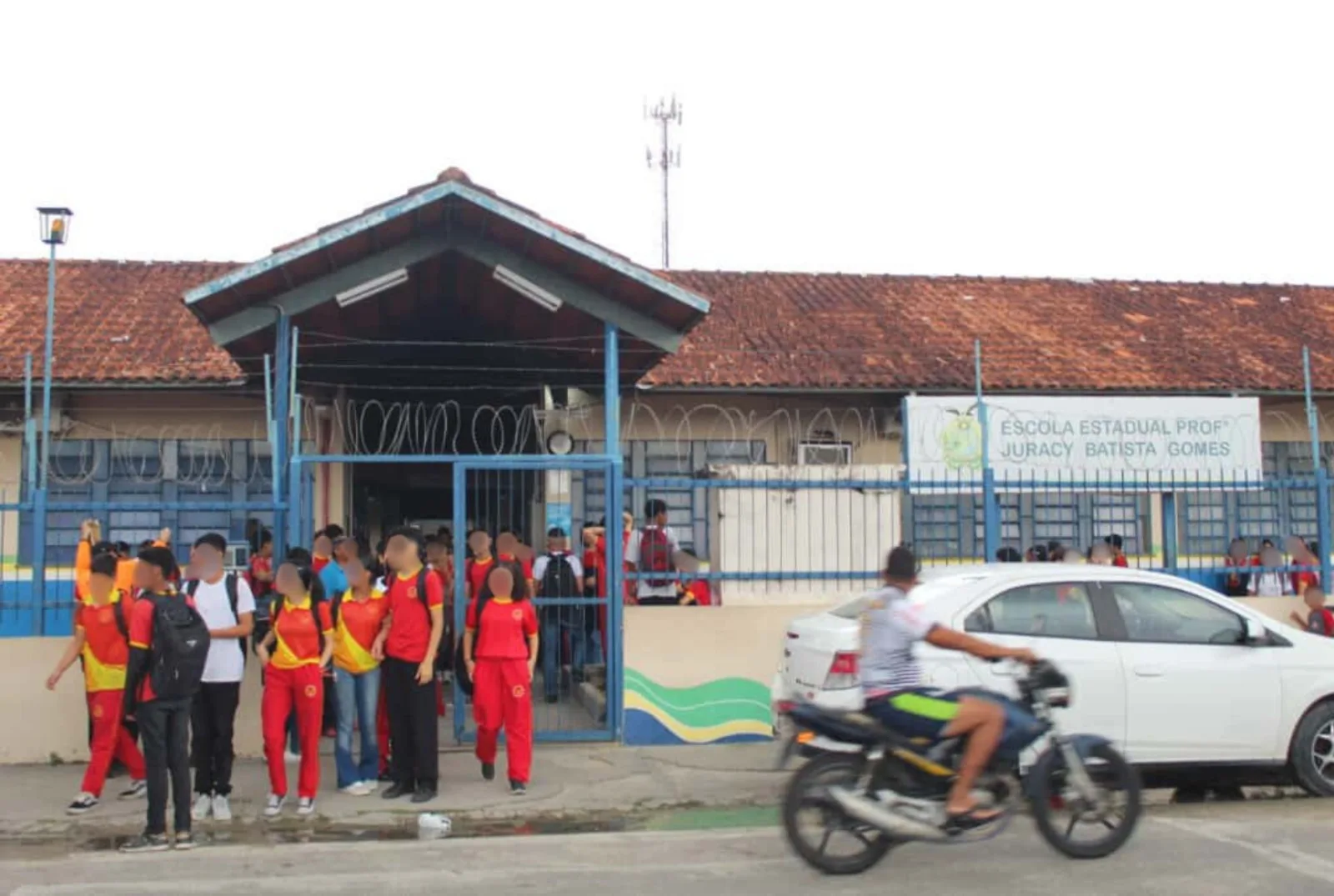 Localizada no Mutirão, um bairro periférico da zona leste de Manaus, a Escola Estadual Professor Juracy Batista Gomes, que atende estudantes do ensino fundamental, recebe ações no Programa Escola Segura, Aluno Cidadão (Pesac) que, em teoria, tem a proposta de reduzir a violência no ambiente escolar.