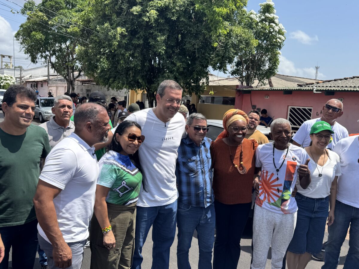 Do Pacoval, a comitiva seguiu para o bairro Nova Esperança, onde está em andamento a obra de pavimentação de 17 vias, que vão melhorar a mobilidade e a qualidade de vida dos moradores.