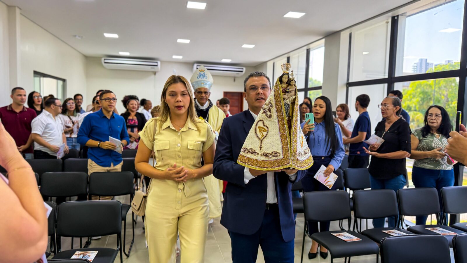 Após a recepção, uma missa especial foi celebrada no hall da Prefeitura, transformando o espaço em um ambiente de espiritualidade e união.