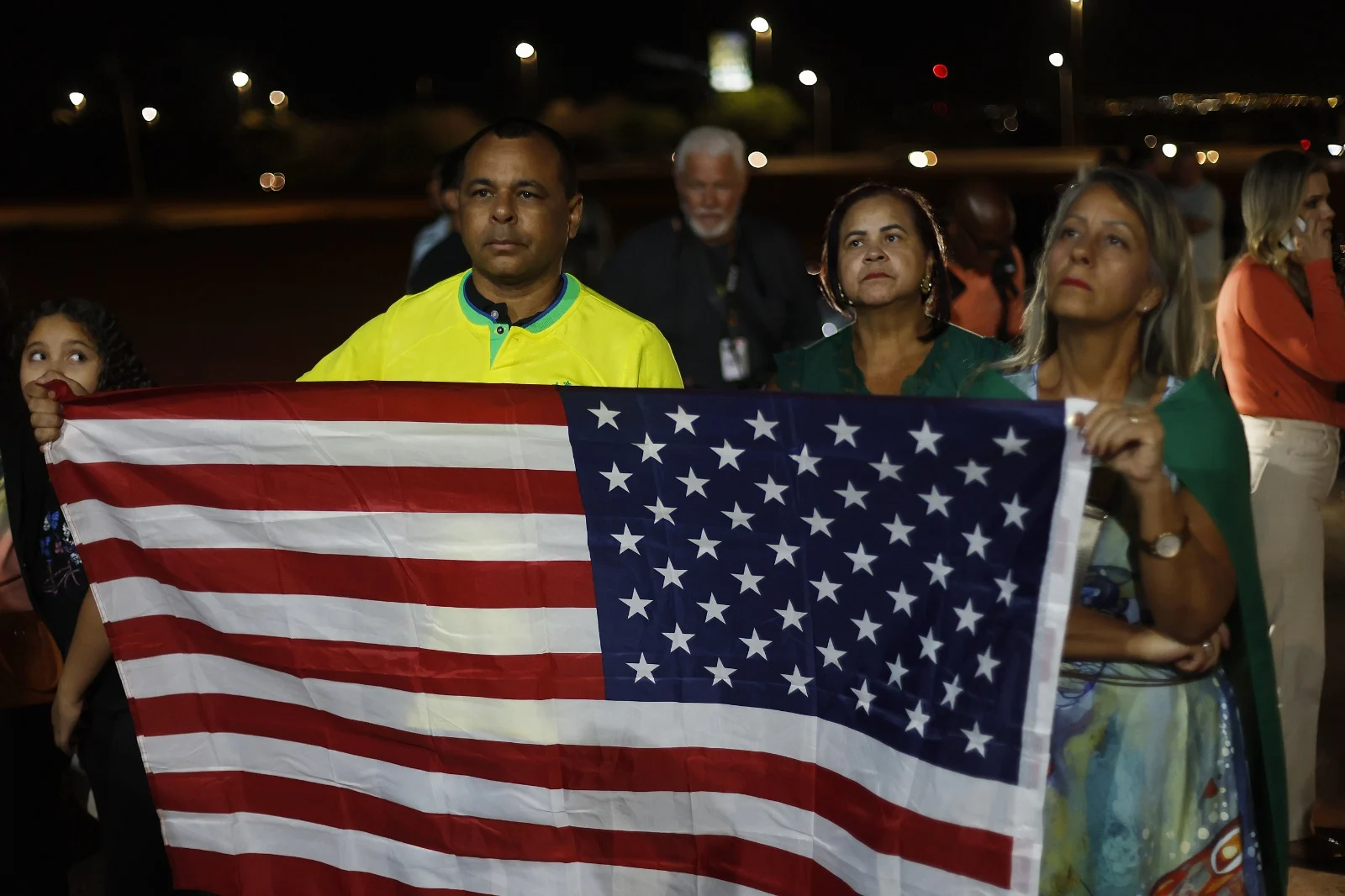 Apoiadores de diferentes idades ajoelhavam e oravam, embrulhados em bandeiras do Brasil ou de Israel. Por vezes, foram interrompidos por carros de pessoas críticas ao ex-presidente, que passavam aos gritos de “cadeia” e buzinavam. Alguns chegavam a entrar no estacionamento de terra onde estava o carro de som para provocar os bolsonaristas.